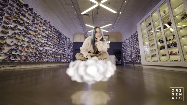Billie Eilish va a comprar zapatos deportivos en el Stadium Goods en la ciudad de Nueva York y habla de cómo la música de Riff Raff la involucró en Jordan, posiblemente trabajando con Jordan Brand en un zapato, y por qué le gustan las zapatillas de deporte de los hombres.